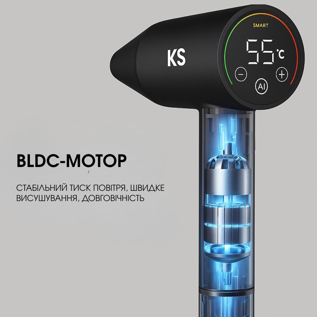 - BLDC-мотор: стабільний тиск повітря, швидке висушування, довговічність.