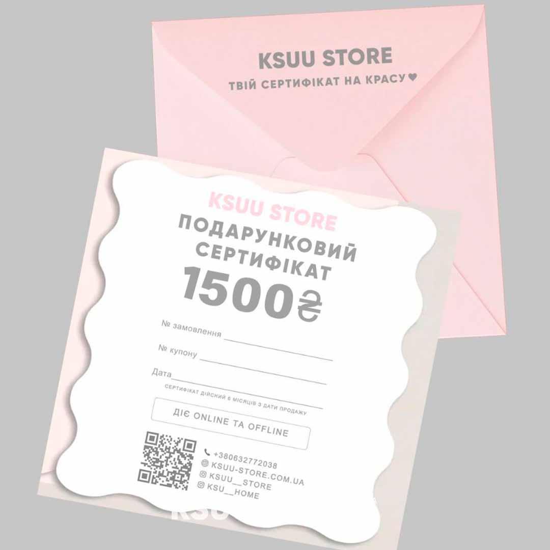 Даний сертифікат дозволяє придбати в інтернет-магазині Ksuu store будь-які товари на суму 1500 гривень!