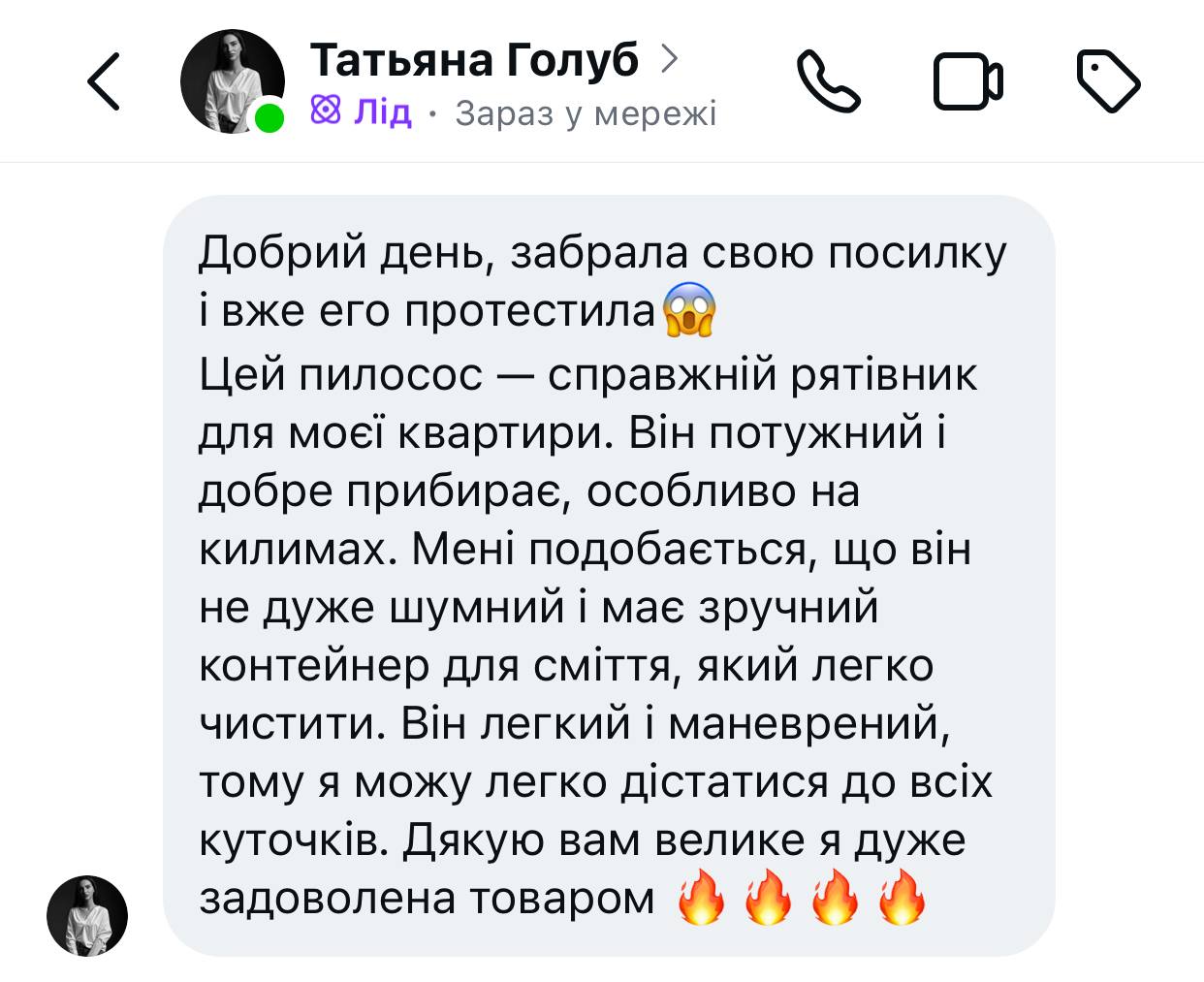 Отримали пилосос. Дуже сподобався. Зручний, потужний, те, що шукали. Рекомендуємо. Дякуємо від душі.