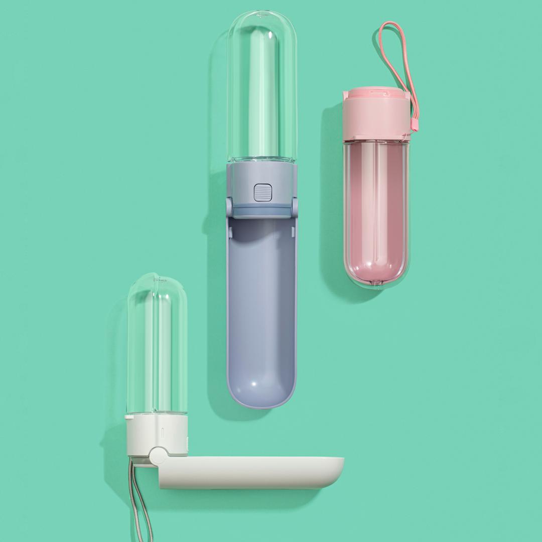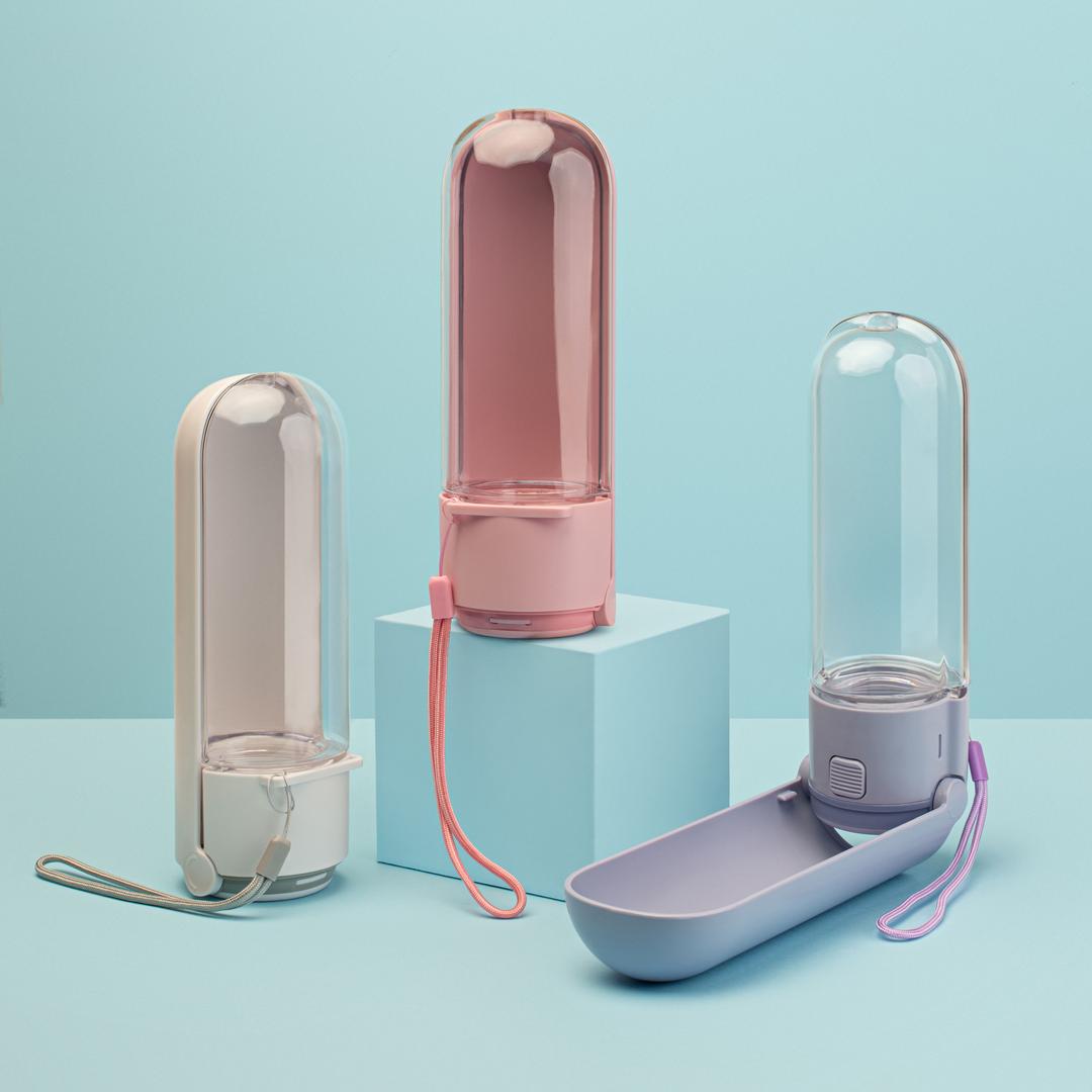 Особливістю даної моделі є кнопка, що дозволяє злити недопиту воду назад у контейнер та подавати воду у вбудовану миску, забезпечуючи чистоту та зручність у використанні. Додатково, завдяки спеціальній конструкції, вода не протікає, що дозволяє носити поїлку у сумці або рюкзаку без ризику протікань. Ремінець на руку робить поїлку легкою для носіння на прогулянках або подорожах, завжди забезпечуючи свіжу воду для вашого пухнастого друга.