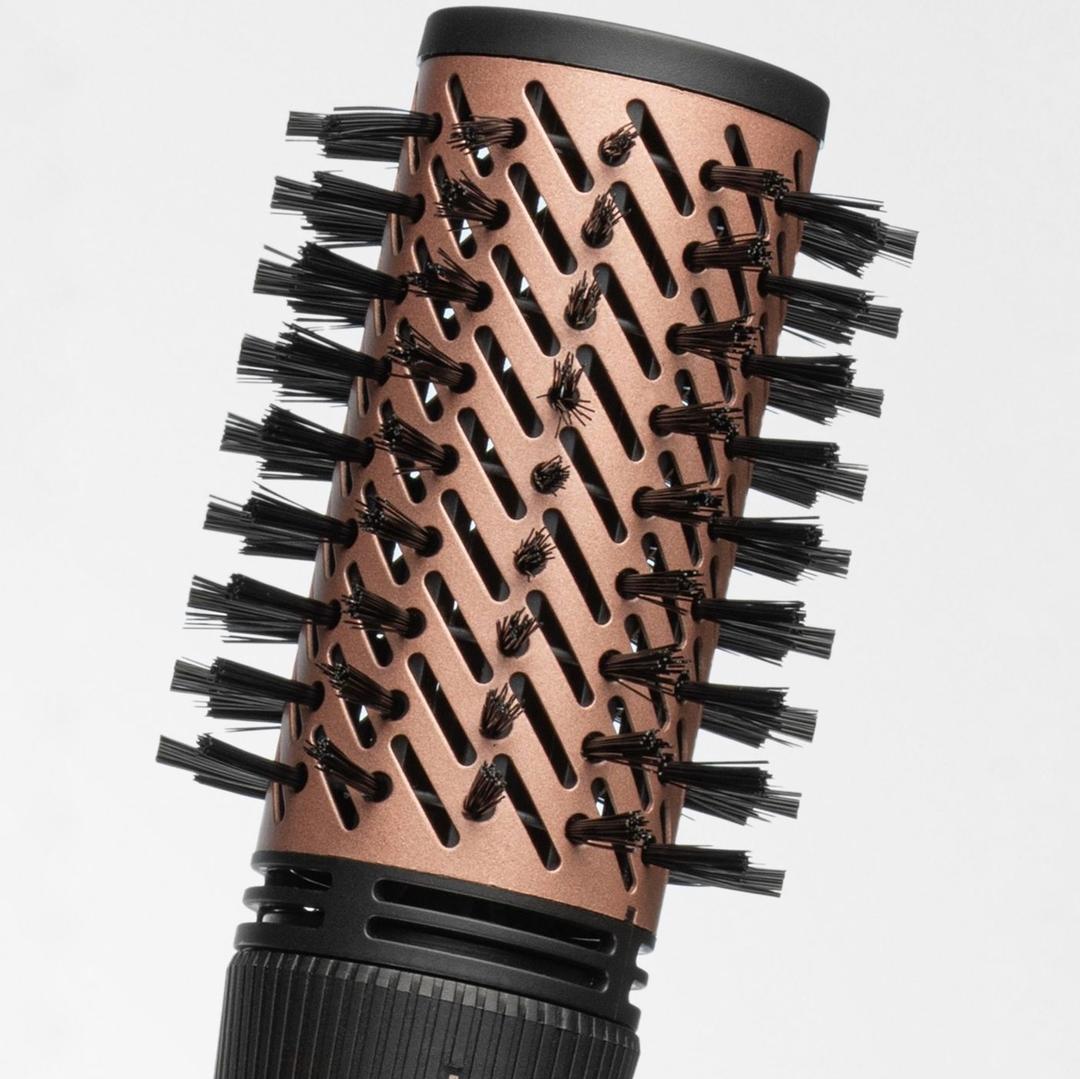 Насадка-браш с автовращением создана для быстрого и комфортного укладывания волос. Её круглая форма и подвижные щетинки обеспечивают равномерную сушку и лёгкое создание прикорневого объёма, делая причёску более пышной и живой.