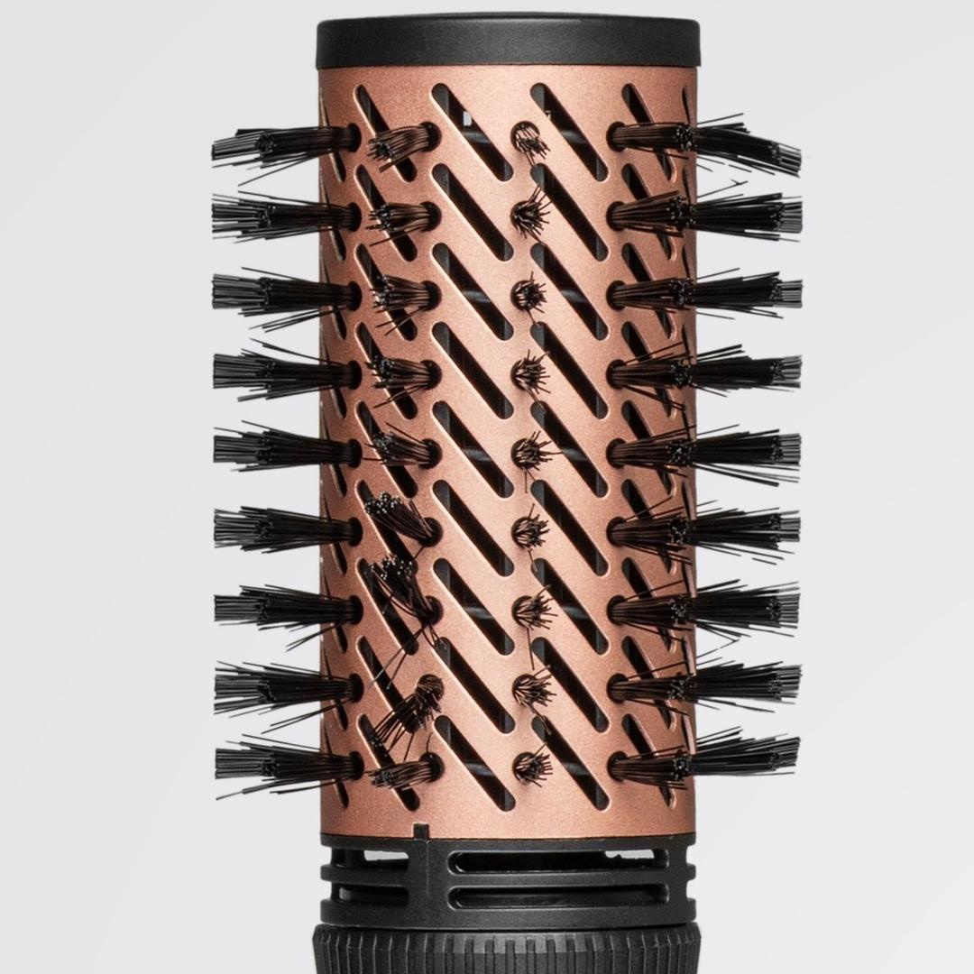 Насадка-браш с автовращением создана для быстрого и комфортного укладывания волос. Её круглая форма и подвижные щетинки обеспечивают равномерную сушку и лёгкое создание прикорневого объёма, делая причёску более пышной и живой.