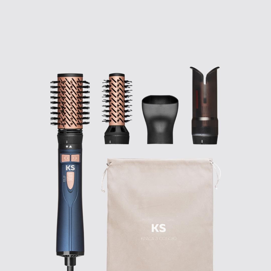KS 4in1H302 - многофункциональный стайлер, который объединяет сразу четыре насадки для разных стилей укладки. Это универсальный инструмент, способный заменить фен, брашинг и плойку, позволяя создавать любые образы – от идеально гладкой причёски до упругих локонов.